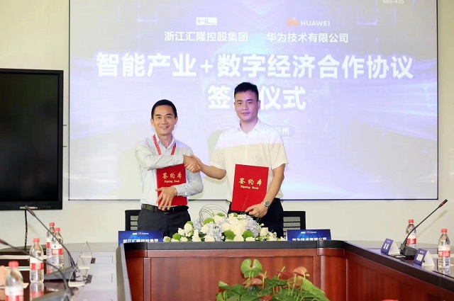 浙江汇隆控股集团董事长胡新伟与华为浙江企业业务部部长王宏有签署合作协议